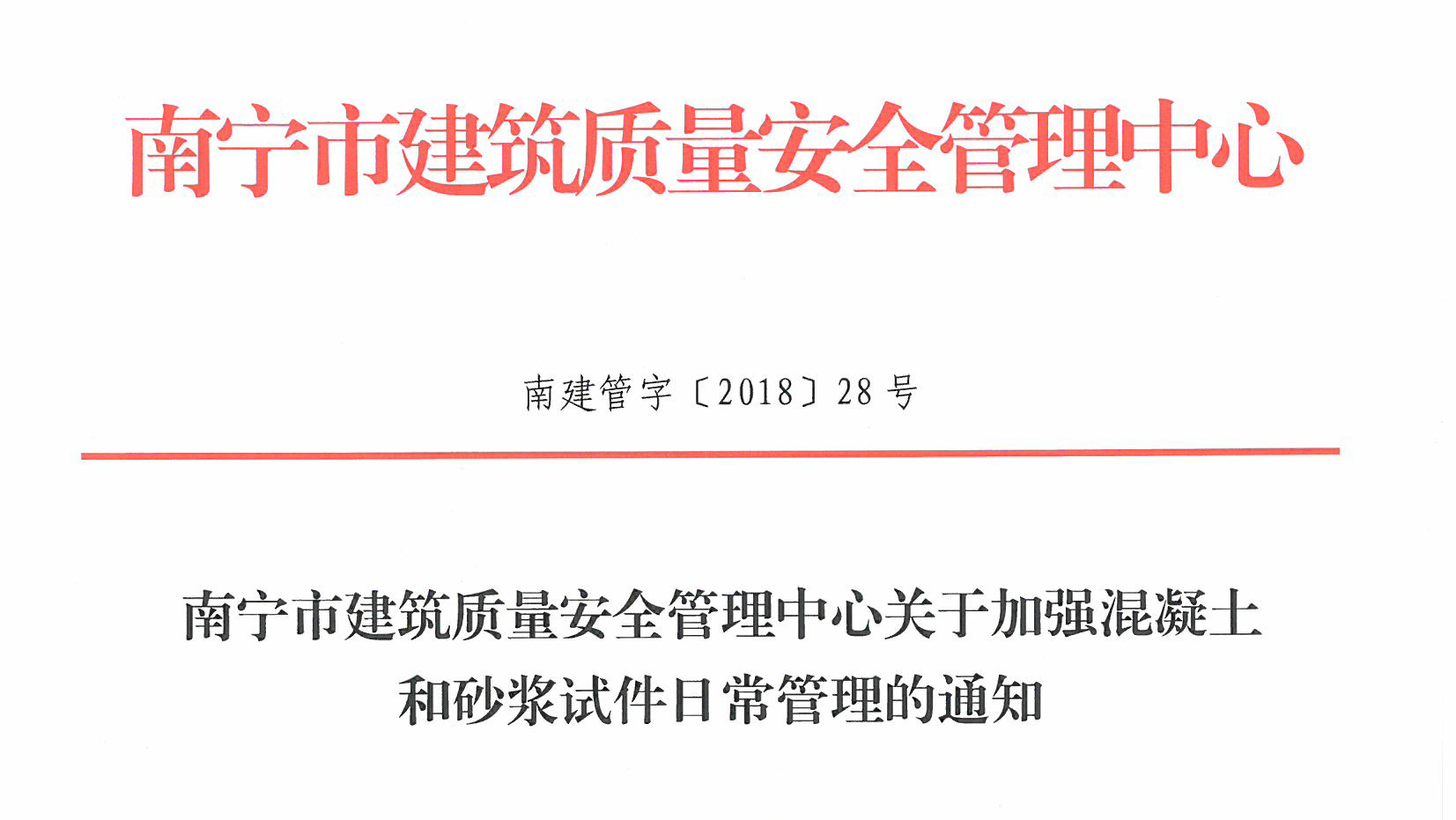 南宁市建筑质量安全管理中心关于加强混凝土和砂浆试件日常管理的通知